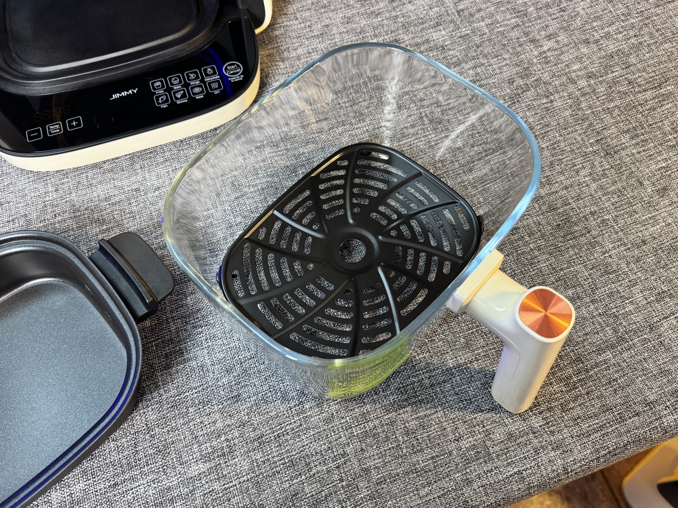 Le friggitrici ad aria stanno diventando tutte abbastanza uguali fra di loro ed è difficile trovare modelli che abbiano funzionalità o caratteristiche uniche. Nel mercato spicca attuale Cosori con i suoi modelli dotati di capacità di cottura e funzionalità al di sopra della media. Ma anche Jimmy vuole potersi ricavare uno spazio nel mondo delle friggitrici ad aria e ci prova con la nuova Jimmy AF3 che ha la caratteristica unica di essere una friggitrice 2 in 1: può funzionare in maniera classica grazie al cestello in vetro trasparente da 4 litri oppure come una piastra, grazie al secondo recipiente presente in confezione, che permette di cucinare e riscaldare.