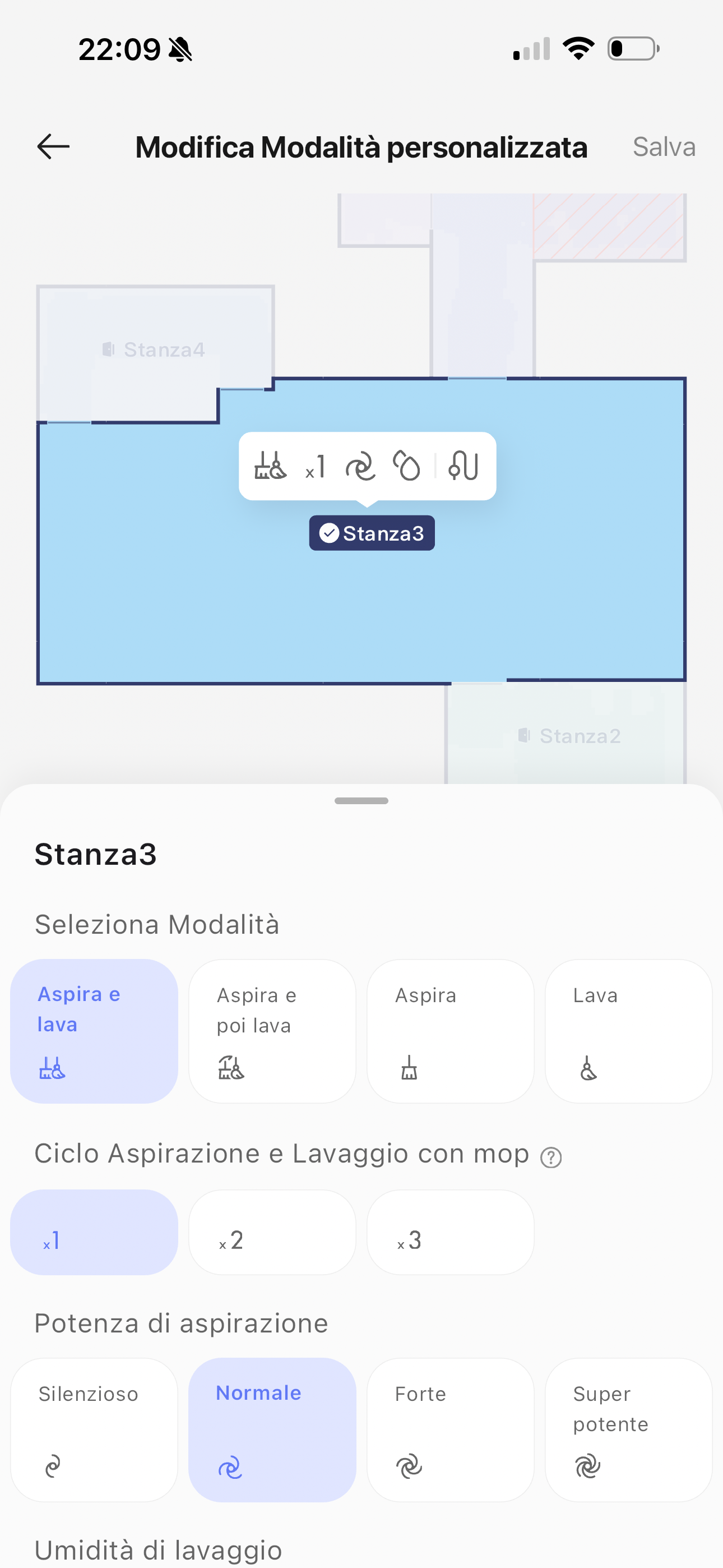 Il robot si comanda alla perfezione grazie all’ottima app per smartphone che consente di programmarne al meglio ogni aspetto, di gestire più mappature ed anche di personalizzare le tipologie di pavimenti, le zone con tappeti e mobili e creare zone di esclusione. L’app è assolutamente impeccabile, forse la migliore in circolazione per il mondo dei robot, e ci consente di aspirare, lavare, aspirare e lavare oppure personalizzare il ciclo di pulizia della nostra casa.